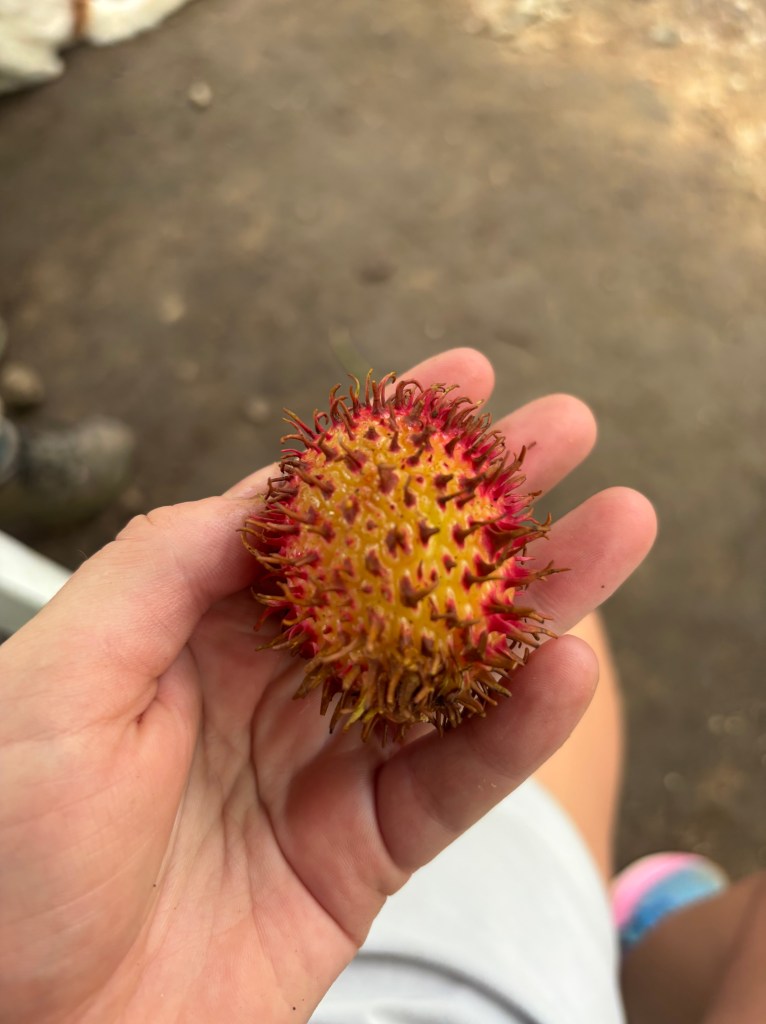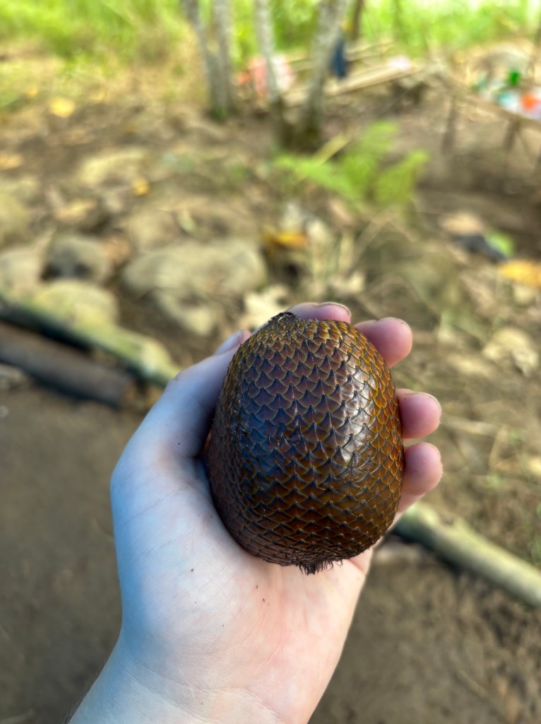 One of my biggest hopes on this trip so far is that my field assistants don’t hate me. Throughout our time together, the assistants have begun collecting forest greens and fruits to feed us. The greens have been cooked into our dinners (by our AMAZING chef Rani), and the fruits are handed to us. I have literally eaten countless random fruits at this point. They go knock them out of trees and hand them to me. I eat them without a second thought. I would be very easy to poison.